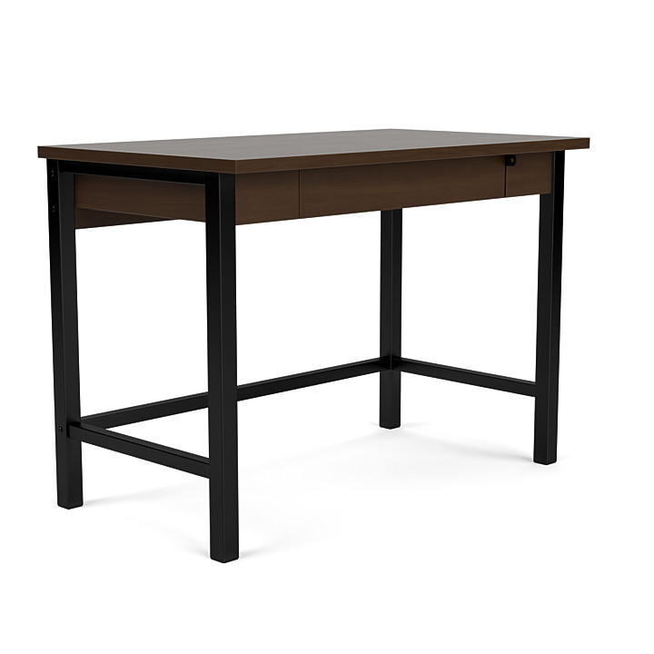 Metal leg writing desks have contemporary style with durable laminate and steel construction. The steel black powder coated frame on the Merit Writing Desks offers durability and sturdiness. The laminate surface has with a PVC edge banding gives these desks maximum durability as well as impact resistance. The Merit Collection provides function and flexibility to student rooms on campus. Check out the entire Merit Collection to learn more.